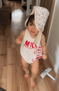 「こっちに来てくださ~い」1歳娘を呼んだママ。直後登場した娘の姿に「100点」「爆笑」「ヤバい」 約1年4ヶ月後の様子を聞いた