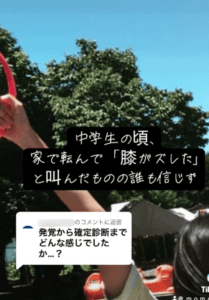 中学生のとき、部屋で滑って膝が外れた感覚があり「膝が外れた」と両親に伝えたももさん。しかし当時は、膝が脱臼するとは思われず、受け止めてもらえなかったと振り返ります。