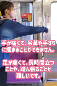 痛みで、つり革、手すりにつかまることができない(@hidamari_fuyuさんより提供)