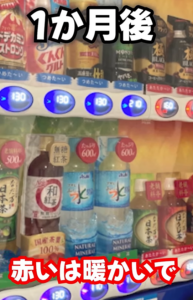 ある夏の日、日本の街角で何気なく自動販売機のボタ🙇♀️ンを押しました。