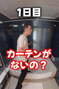 来日して間もない頃、フロリアンさんはホテルのお風呂を前に、