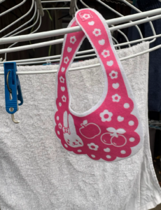 「洗濯で縮んだのかしら」と目の前に差し出されたのは、かなり小さなサイズのスタイ。