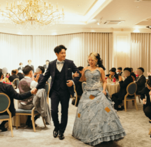 結婚式当日の余興では、ドレスの色当てクイズを実施。しかし、まさかのデニム素材に参列者はみんな驚き、感動していたといいます。