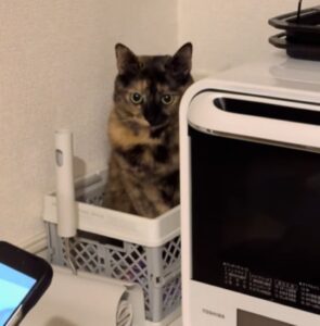 家の中で突然行方不明になるのも、猫ちゃんの飼い主さんにとってはよくあることなのかもしれません。見つかったときのきょとんとした表情も、たまらなくかわいいちゃっこちゃんでした。