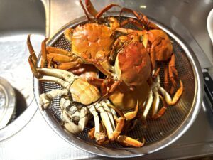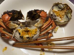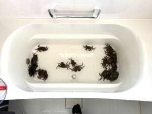 真水にしばらく浸けておかないといけないため、浴槽に水を張り、そこに大量のカニを入れて泥抜きをしたそうです。