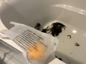 カニの調理を終えたあとは浴槽を掃除し、無事に柚子湯に入ることができたと話します。