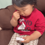 • いつも元気なのに…静かに目の辺りを擦る1歳娘に違和感。しかしよく見ると「何枚入れる気なの」「何ループも見ちゃってますw」
