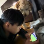 • スマホを見ているだけなのに…背後に感じる“気配”に違和感。振り返ると、まさかの正体に「浮気確認?」「こういう友達いた」「可愛いw」
