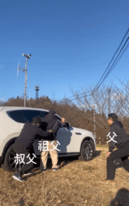 その後、車が別角度で映され、おじいちゃんを飛んでいるように見せていた裏側が明かされるのでした。