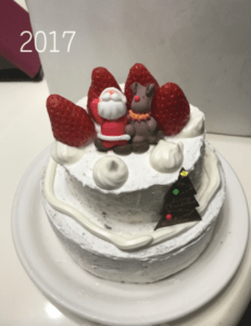 yuiさんが初めてクリスマスケーキを作ったのは、2017年に親戚とクリスマスパーティーを開くことになったときでした。当時は将来パティシエを目指しており、両親に相談して市販のスポンジとホイップクリームを使い、自信満々にケーキ作りに挑戦したそうです。