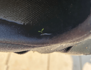 するとその後、驚きの光景を目撃することに。なんと、靴の内側から小さな植物の芽が伸びていたのです。