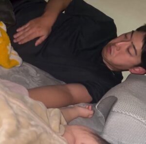 • 夜泣き対応で深夜に起きたパパ。しかし、ママが様子を見に行くと…「これは爆笑」「気持ちは伝わった!」「お疲れ様です(笑)」