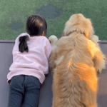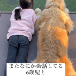 • 6歳娘と肩を並べるゴールデンレトリーバー。それから1年、3歳になった愛犬と娘の様子に「絆は変わらない」「まだまだですね」