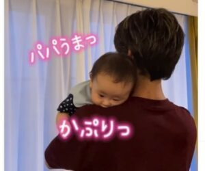 当時の記事で話題になったのは、パパに「たかいたかい」をしてもらってご機嫌な息子さんの姿。