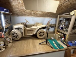 前回のショベルカーと同様に、実際に乗って足でこぐことができるタイプですが、今回は思いっきりワイルドなデザインに仕上げる予定とのこと。