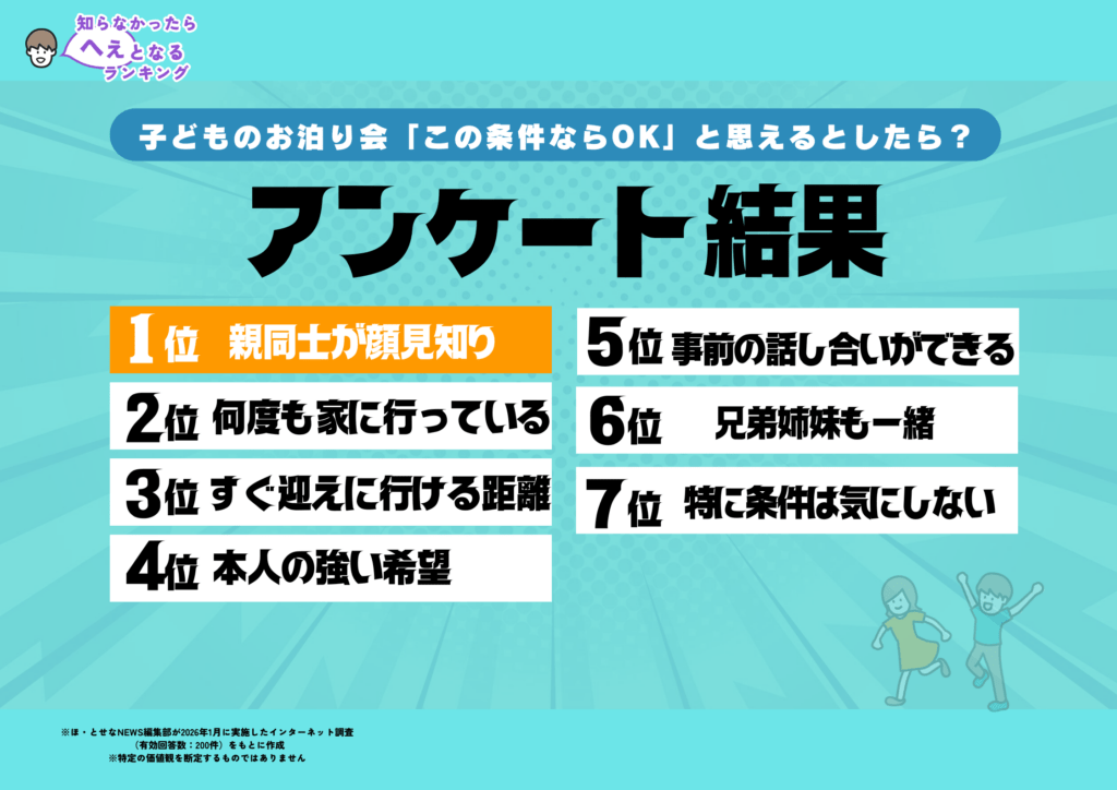 • お泊り会で…「これまでにも何度か家を行き来したことはありました。」40代母が直面した問題。 <子どものお泊り会「OK出すときの条件」ランキングTOP7>