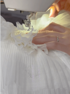 娘さんが0歳の頃から、成長の節目ごとに記念のドレスを手作りしていたというママさん。七五三に向けて晴れ着も手作りすることにしました。