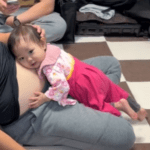 • 大きく膨らんだお腹を優しく撫でる1歳の赤ちゃん。しかし、よく見ると…まさかの光景に「何ヶ月ですか?w」「あら、かしこい」