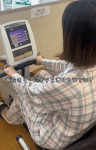 最初は寝たきりだった@fordidi_liveさんでしたが、症状は少しずつ着実に回復していきました。さらに、リハビリ用のバイクを漕げるまでになります。