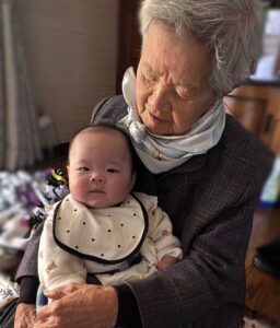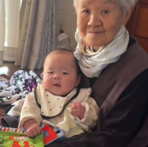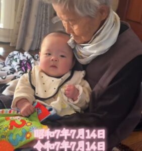 0歳の娘さんと93歳のおばあちゃんは、二人とも7月14日が誕生日。娘さんが生まれ、お正月にパパさんの実家へ帰省した際、18歳まで同居していたおばあちゃんに会いに行きました。