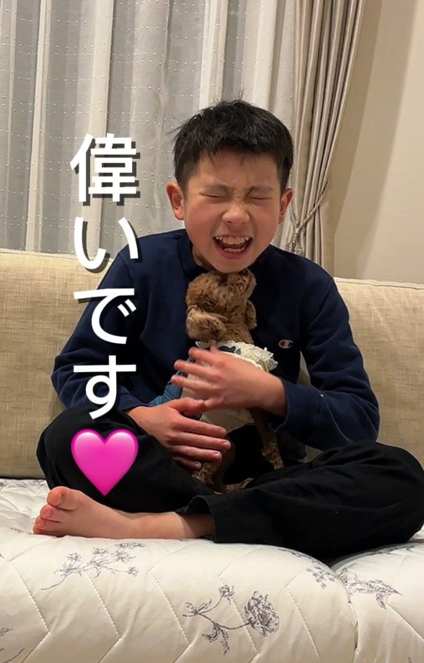 • 2匹の愛犬と遊ぶ小5息子。しかし、嫌な予感がした母が様子を見に行くと…まさかの姿に「面白すぎる」「こどもの発想には勝てない」