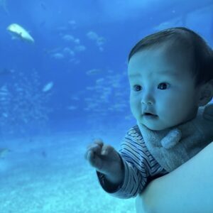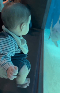 初めて水族館に来た生後6ヶ月息子。しかし次の瞬間、水槽越しに見えたまさかのモノに「反応良すぎw」「前世は小魚かな…」