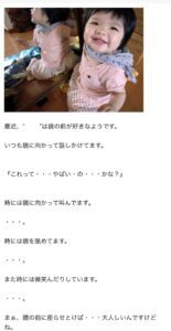 ブログには、@n.ko___oさんが生まれたばかりの頃の様子や出来事、成長していく姿が丁寧に綴られていました。初めてそのブログを読んだとき、思わず涙がこぼれたといいます。