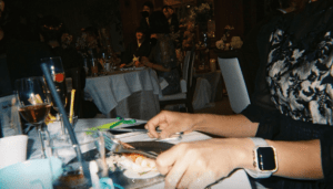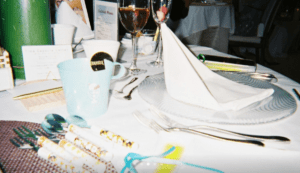 現像された写真には、テーブルやお花が近くに見えたり、料理やコップが大きく見えたりとさまざま。ゲストの顔が途中で切れている写真もあり、そこには子どもならではの低い目線がそのまま写っていました。