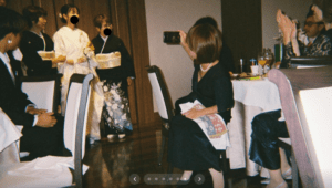 子どもの親御さんからは「親子でとても幸せな時間を過ごせました」という感想が寄せられました。挙式では子どもがリングボーイを務め、披露宴では用意されたおもちゃやフィルムカメラを使いながら楽しそうに過ごしていたそうです。