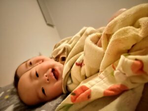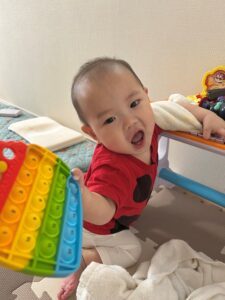しかし本人は眠気を感じさせる様子もなく、キャッキャと声を上げながらハイハイや伝い歩きをしたり、上のお兄ちゃんやお姉ちゃんと元気いっぱい遊んでいました。