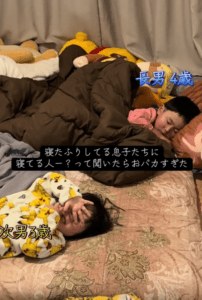 ある日、兄弟2人で寝ていたとき、部屋から物音が聞こえてきたそうです。ママさんが様子を見に行くと、2人は布団に横になりながら“寝たふり”をしていたといいます。