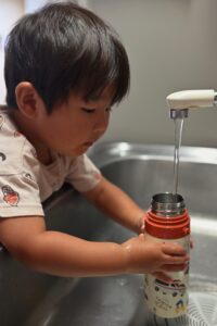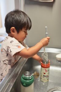 ある日の夕食後、パパさんが洗い物をしていると「水筒、洗おうか?」と声をかけてくれたという2歳の息子さん。