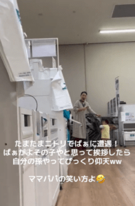 ある日、家族で家具店を訪れていたというパパさん。すると、偶然おばあちゃんを発見しました。
