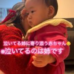 • 抱っこ中の妹を泣かせてしまった6歳姉。責任を感じ泣いてしまうも、次の瞬間…「お姉ちゃんよく頑張ってるよ」「可愛い姉妹」
