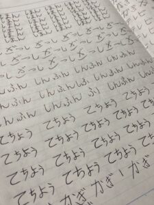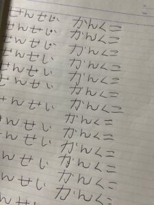 その日の宿題は「『かんこく』を10回書く」でしたが…。なんと、ノートには「かんくこ」と書かれていました。