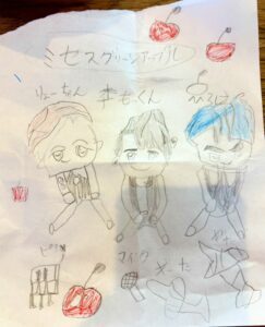 ところが、漢字ドリルのあるページを見た瞬間、思わず二度見。そこに書かれていたのは、息子さんの好きなアーティストの名前が「好きな漢字」としてそのまま書かれていたのでした。