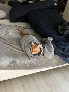 最近では、テレビの裏側や、大好きなパパのパジャマの中に潜り込むことがブームになっているそうです。