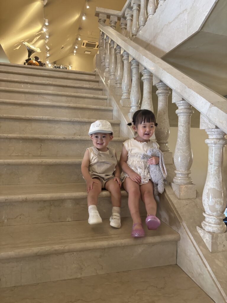 • パパに「ちょっと待って」と言われ、待機する2歳兄と10ヶ月娘。しかし直後、現れたパパの様子に「すんごいパリピww」「パパが1番楽しんでる」
