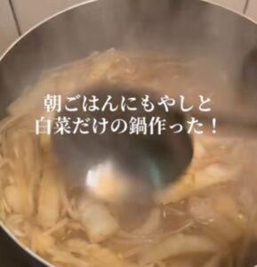 朝ご飯用の鍋を作りつつ、お弁当用のお肉を手際よく焼いていく投稿者さん。