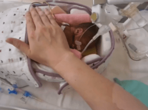 娘さんは、妊娠23週という早い時期に、557gの小さな体で生まれました。