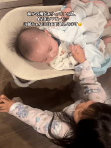 最近は、寝返りの練習を一緒にしているそうで、弟くんは娘さんにコロコロと転がされてアザラシのようになっているものの、とても楽しそうなのだとか。