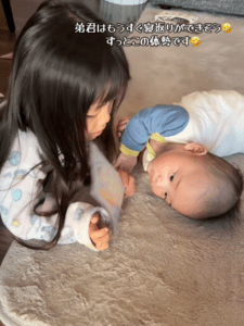 弟くんが大好きな娘さんは、弟くんが泣けば、誰よりも早く駆けつけ、トントンしたり、手を繋いだり、歌ったりしてくれるほど可愛がっているといいます。