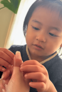 その瞬間を振り返り「夫を見て真似してくれてるんだ」と話すママさん。旦那さんも優しい性格で、すぐに駆け寄り、絆創膏を貼るなど自然に気遣ってくれる存在です。