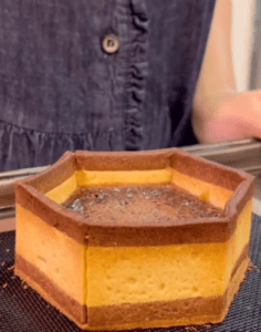 タルトの中は、チョコレート生地、クッキークランブル、塩キャラメル、マシュマロの4層構造。とくに塩キャラメルのパンチのある味がアクセントとなり、美味しく仕上げられたといいます。