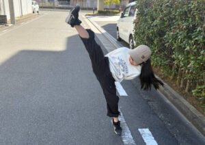 前蹴りをする娘さん(@monta_monkuraさんより提供)