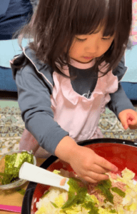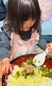 そこで、お母さんは2歳の娘さんでもできるように、混ぜご飯を作ることにしたのでした。