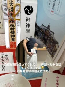 投稿では、つわりのときに送ってくれた食料や旬の果物の写真、さらには安産祈願に足を運んでくれたときの様子などが紹介されており、お義母さんの気遣いが伝わってくる内容になっていました。