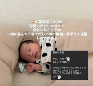 そんなお義母さんは、息子さんの写真や動画を共有すると必ずコメントを返してくれるといいます。そのため、一緒に育児日記をつけているような感覚になるそうです。