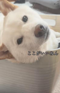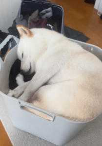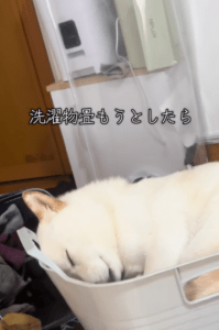 動画の主役は、白豆柴のこはくくん(2歳)。この日、飼い主さんが洗濯物を畳もうとしたところ、いつの間にかこはくくんが洗濯カゴの中に入っていたそうです。