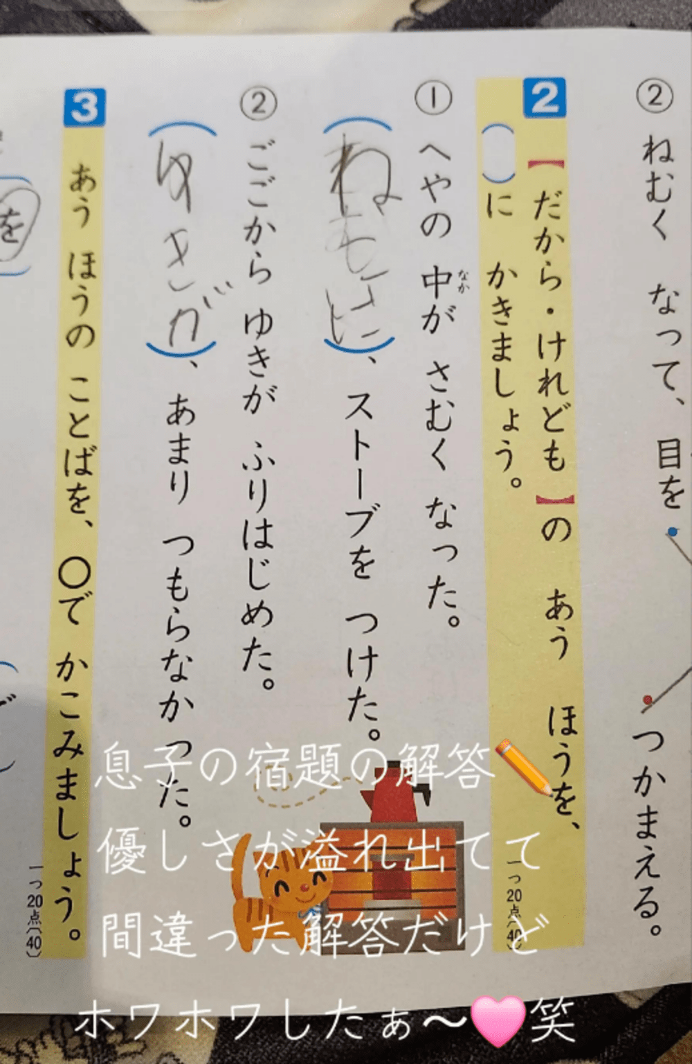 小学校1年生の息子の宿題 その解答内容に「ホワホワした〜」「優しいねぇ〜」